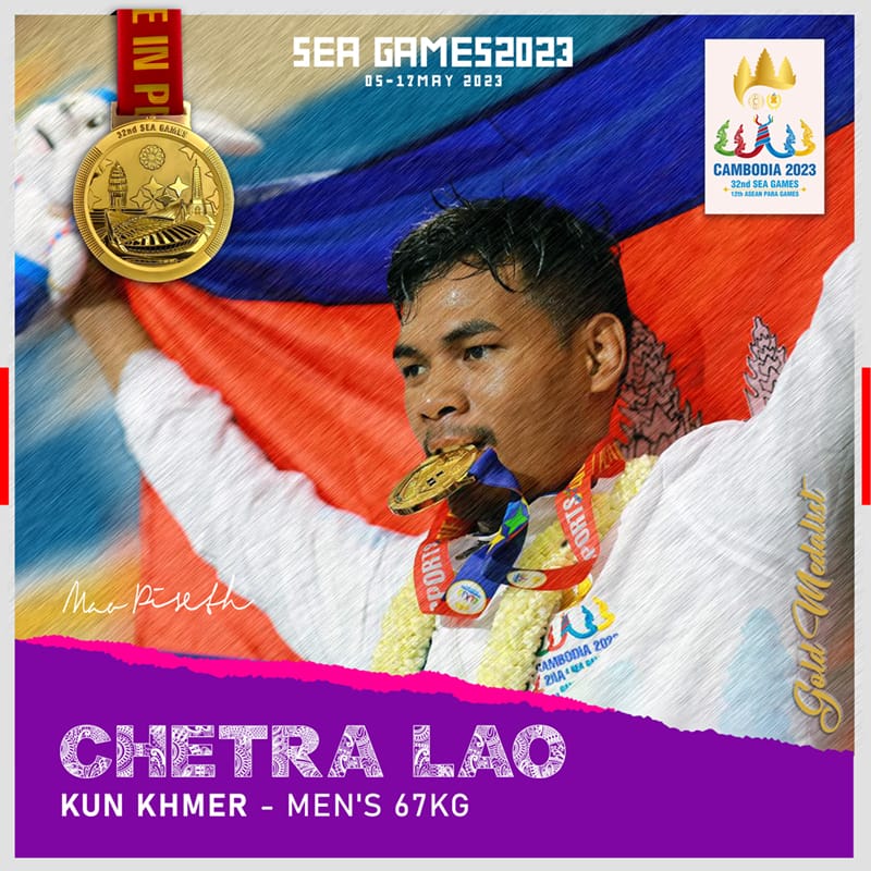 In the 2023 SEA Games, Chetra secured a gold medal by achieving a TKO victory over Vietnamese fighter Chau Dat Nguyen in the 67kg weight category during the final match.